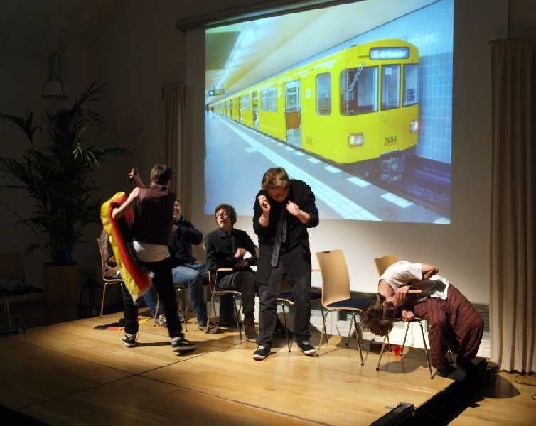 Eine Theater- und Multimediareise durch die Gedankenwelt einer Multi-Kulti Theatergruppe, auch mit jungen Menschen, die ihre Heimat verlassen mussten. Regie Gertrud Auge / Anette Schindler