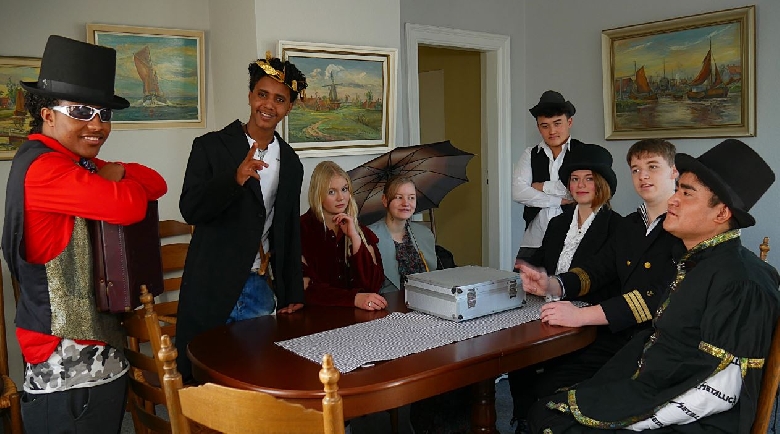 Ein spannendes Theaterstück mit Filmaufnahmen aus der Evenburg in Leer, Theater, Tanz und Gesang.