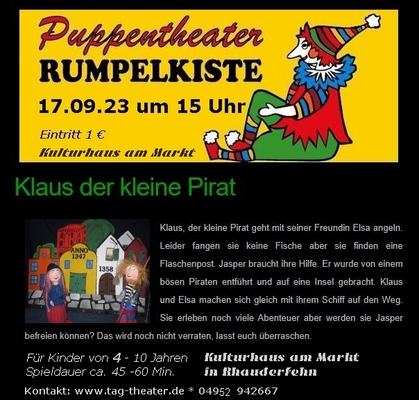 - Veranstalter: TAG-Theater, Telefon 04952-942667, mail@tag-theater.de